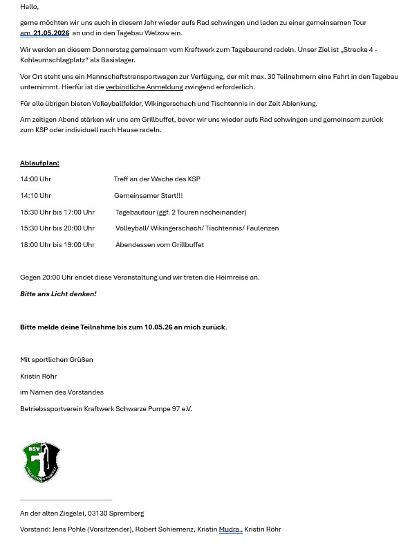 der Betriebsportverein Kraftwerk Schwarze Pumpe 97 e.V. präsentiert seine Website in einem neuen Gewand.